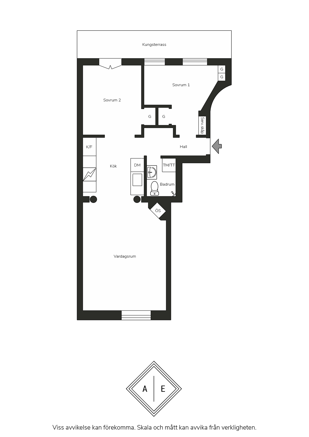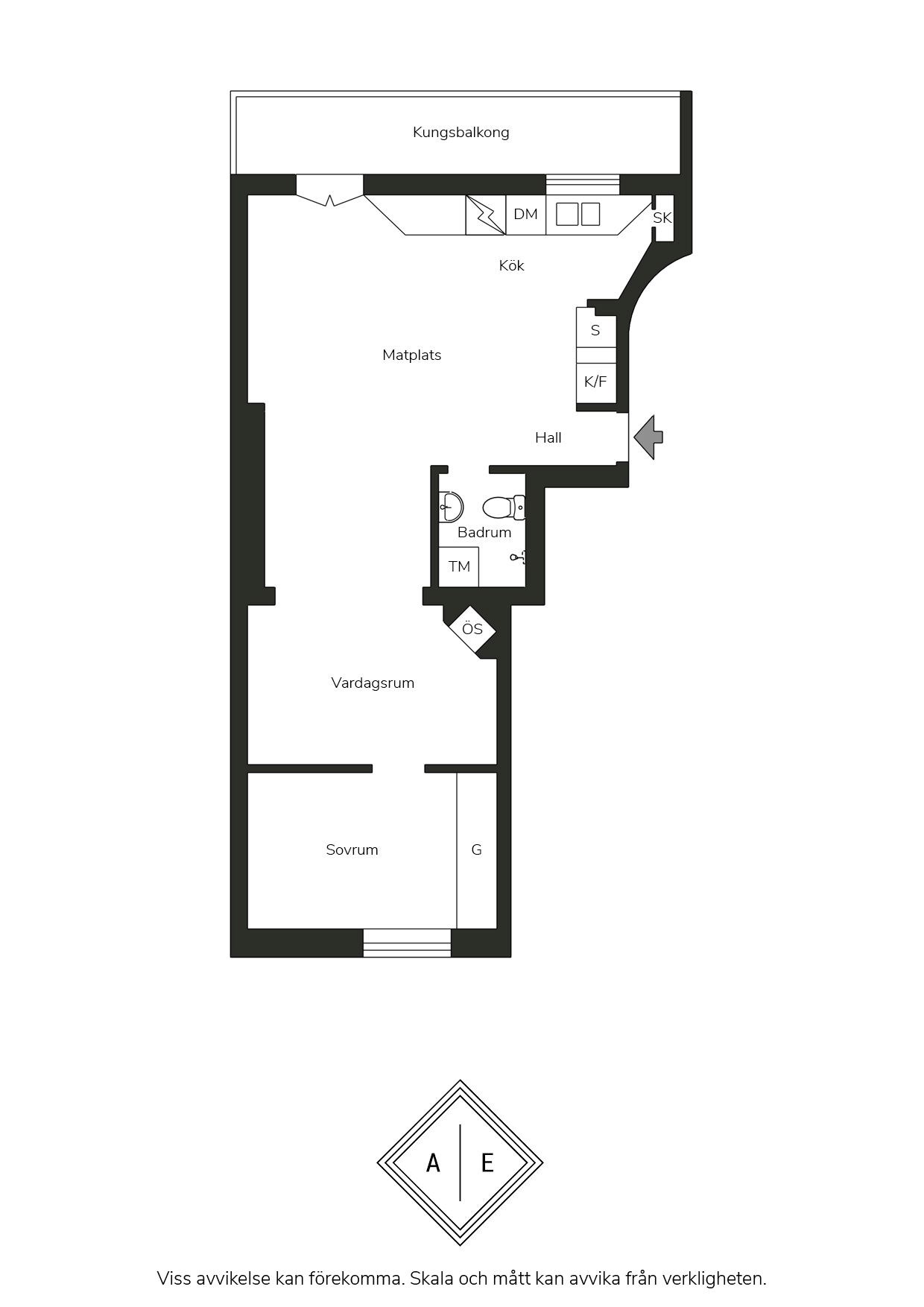 Social tvåa med genomgående planlösning, 0 kr i avgift, solig kungsbalkong med fri utsikt och öppen spis. Möjlig 3 rok (se alternativ planlösning).