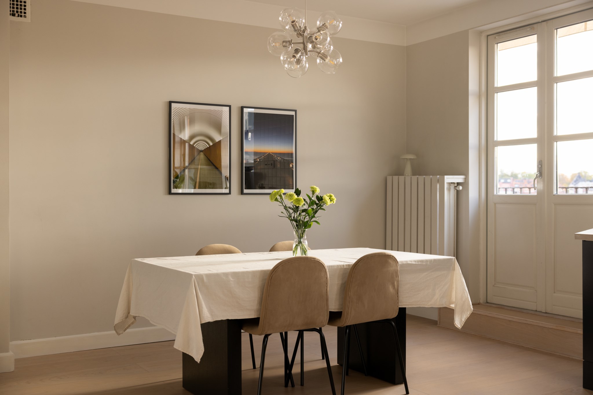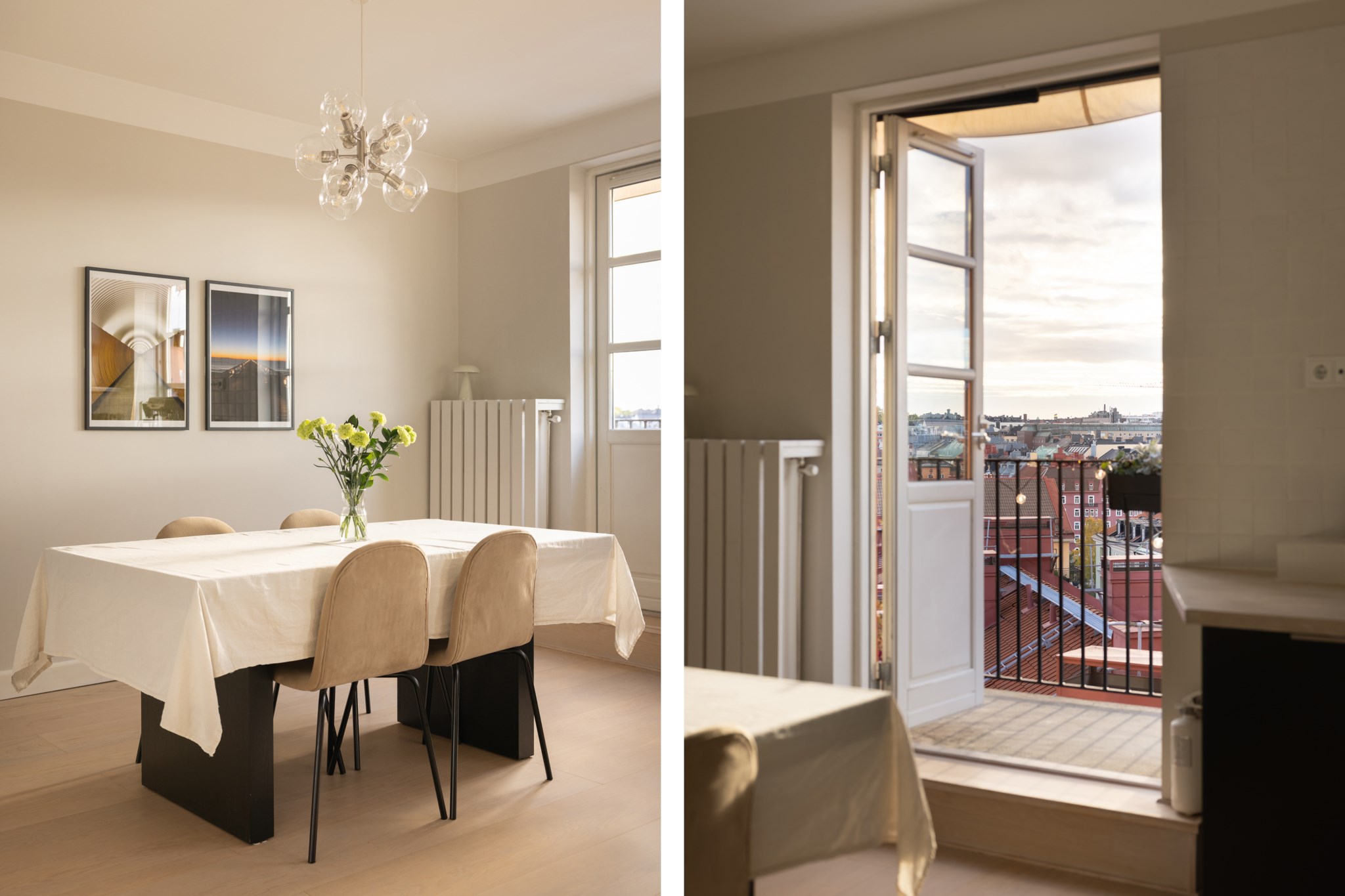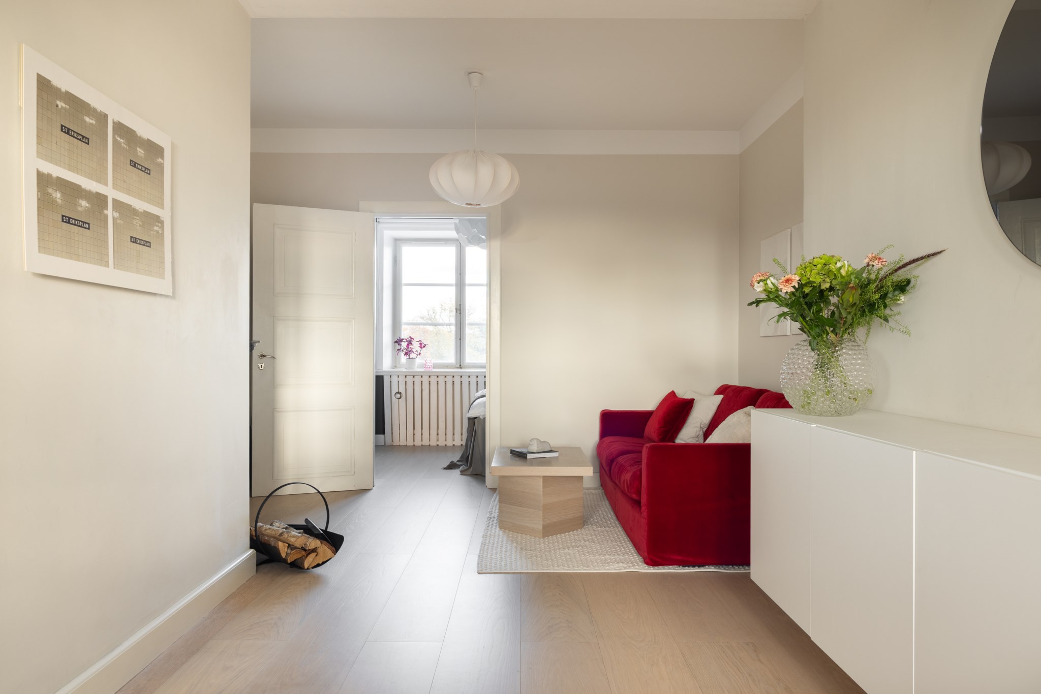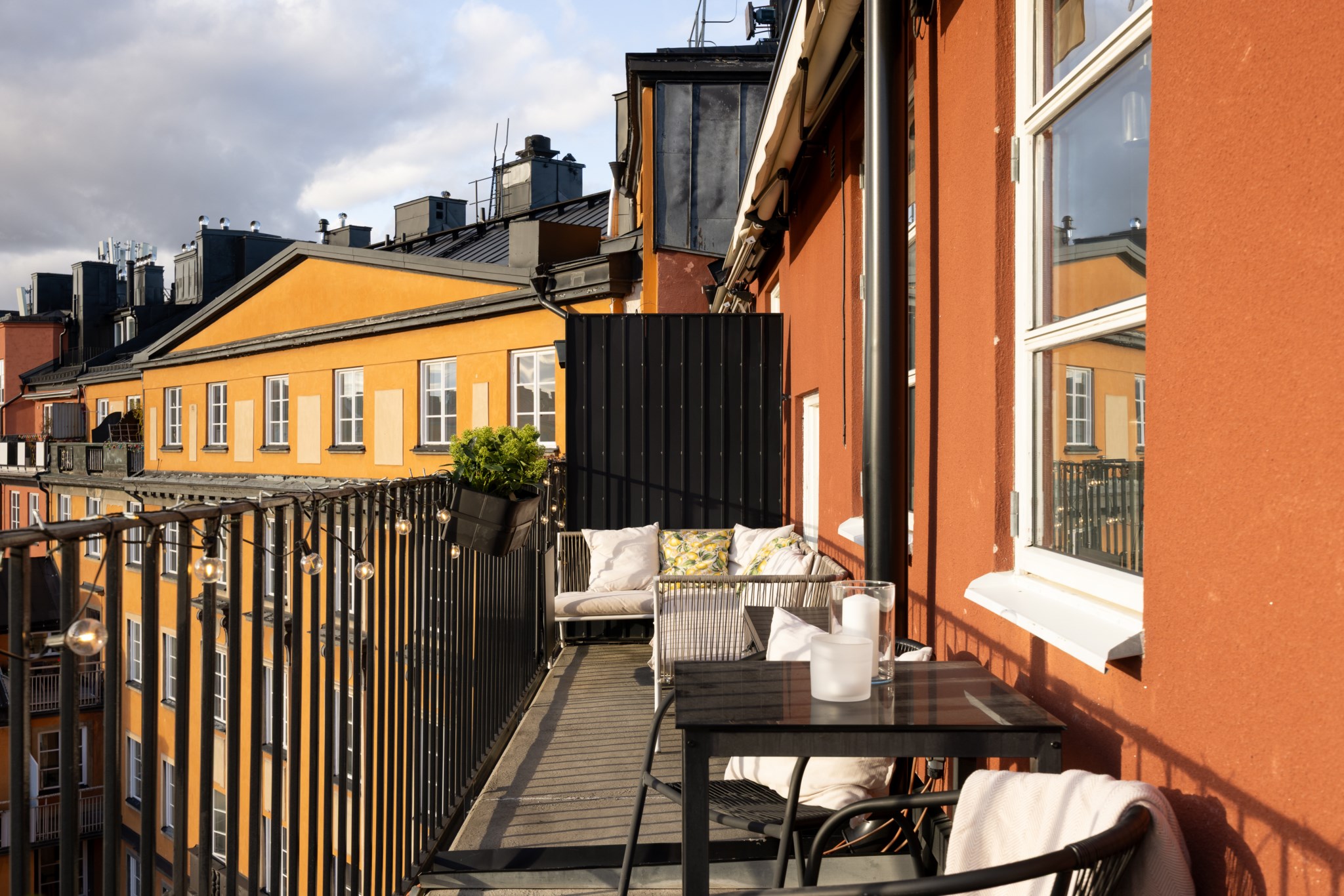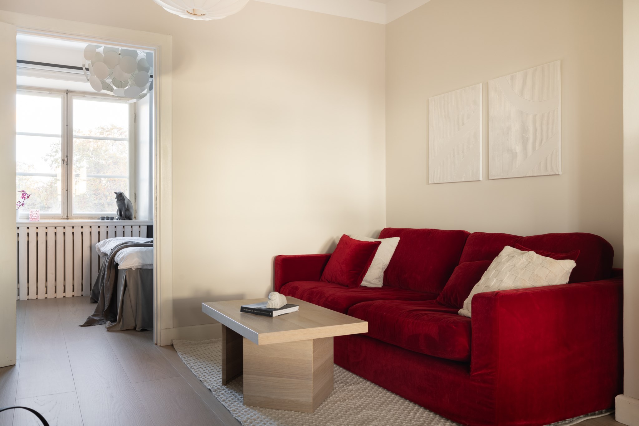 Välkommen till våning 6 (högst upp) på Torsgatan 33 – där klassisk 20-tals charm möter modern elegans. Ljuset flödar genom lägenheten. I det sociala vardagsrummet finns plats för både middagar med vänner och sköna filmkvällar. Härifrån kliver ni ut på en solig balkong i bästa läge – en oas ovanför stadens takåsar. Det moderna köket med generöst ljusinsläpp bjuder in till matlagning – utrustat med allt ni kan behöva och gott om arbetsyta. Rogivande sovrum med bra förvaring och plats för både säng och skrivbord.