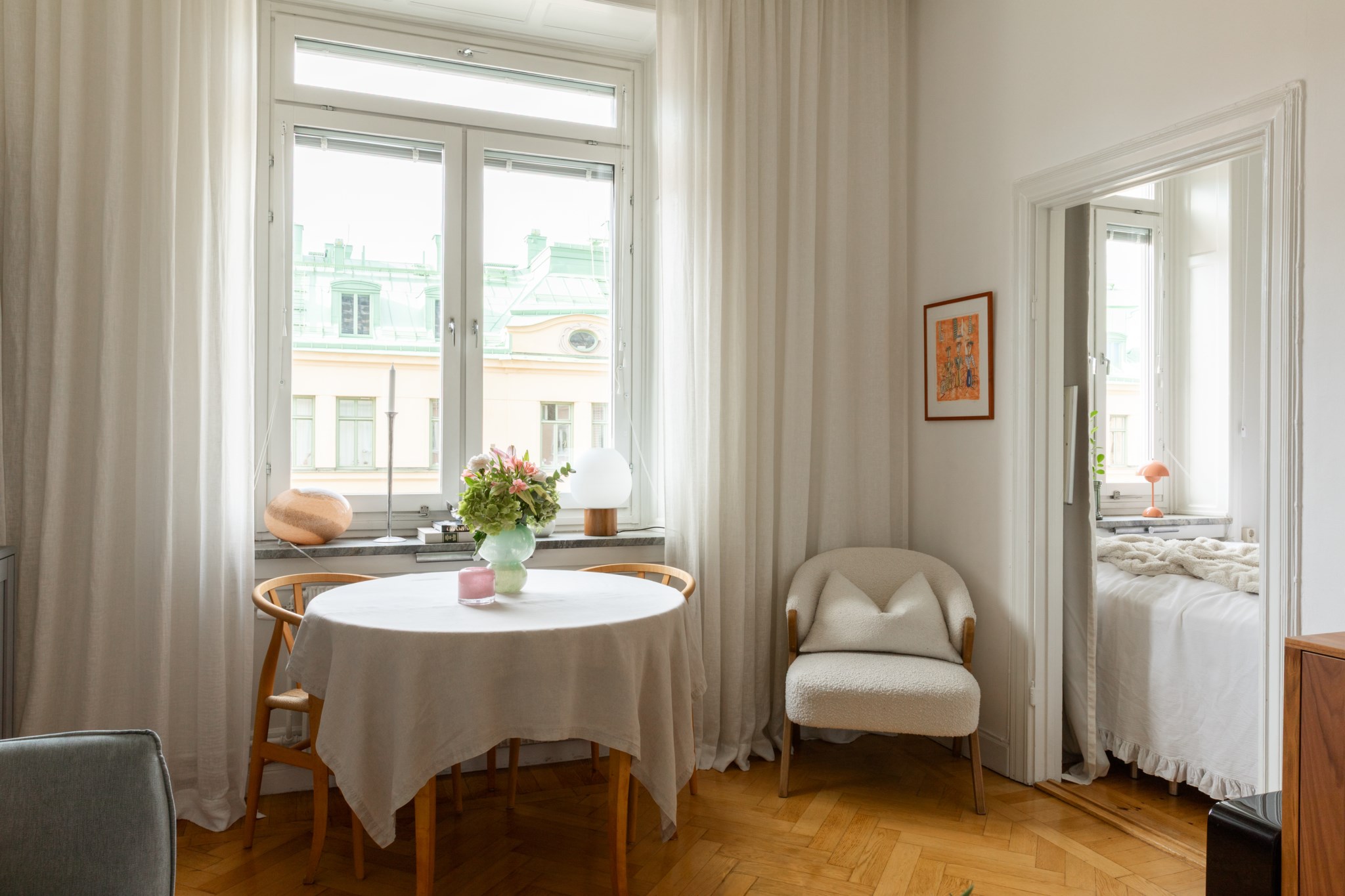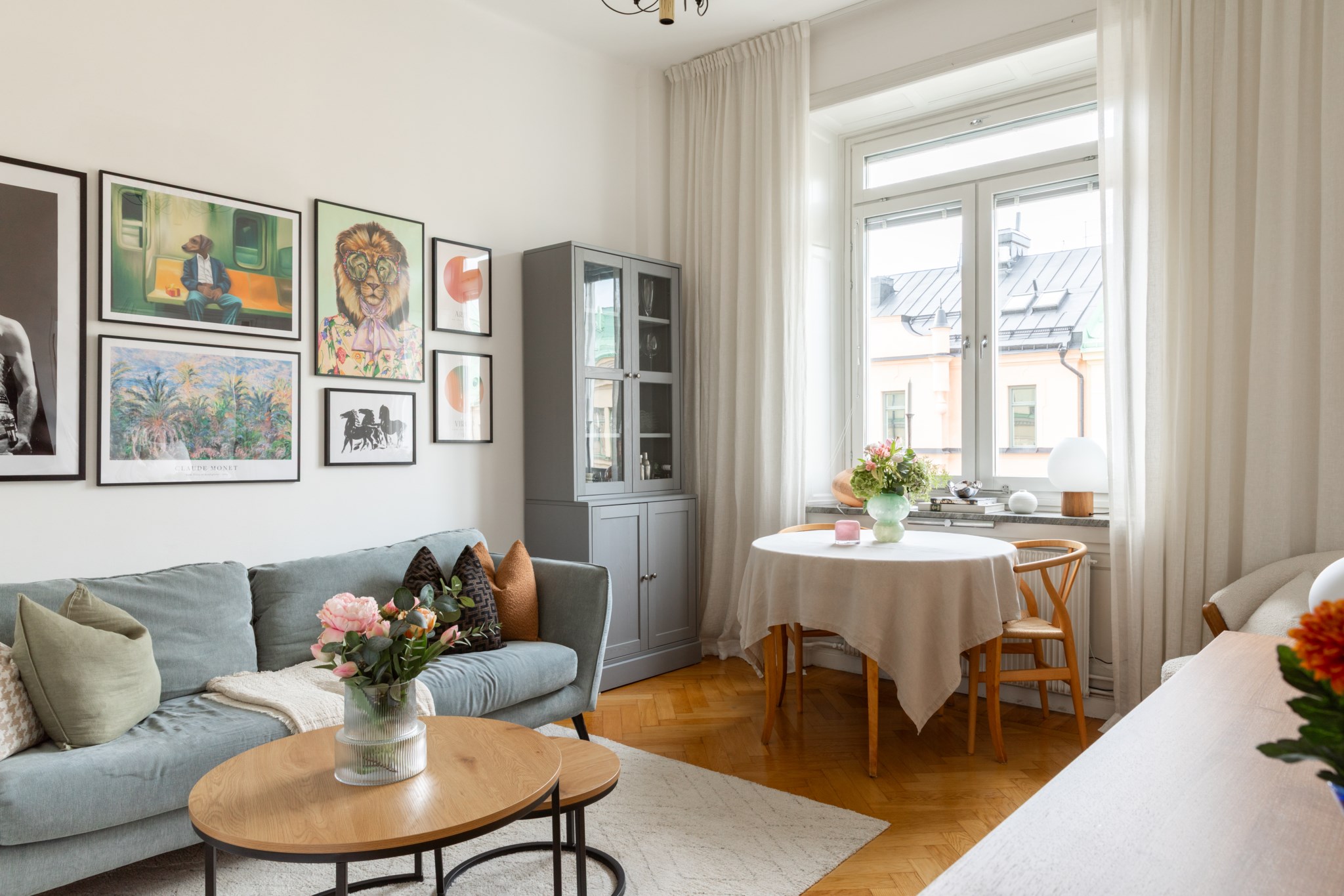 Varmt välkomna till denna sekelskiftespärla belägen på en attraktiv gata, lägenheten präglas av härligt ljusinsläpp, högt i tak och fina materialval. Denna väldisponerad minitvåa är utrustad med allt ni kan önska er, fullt utrustat kök med diskmaskin, socialt vardagsrum med plats för matbord och soffa, välplanerat sovrum och ett kaklat badrum med tvättmaskin.