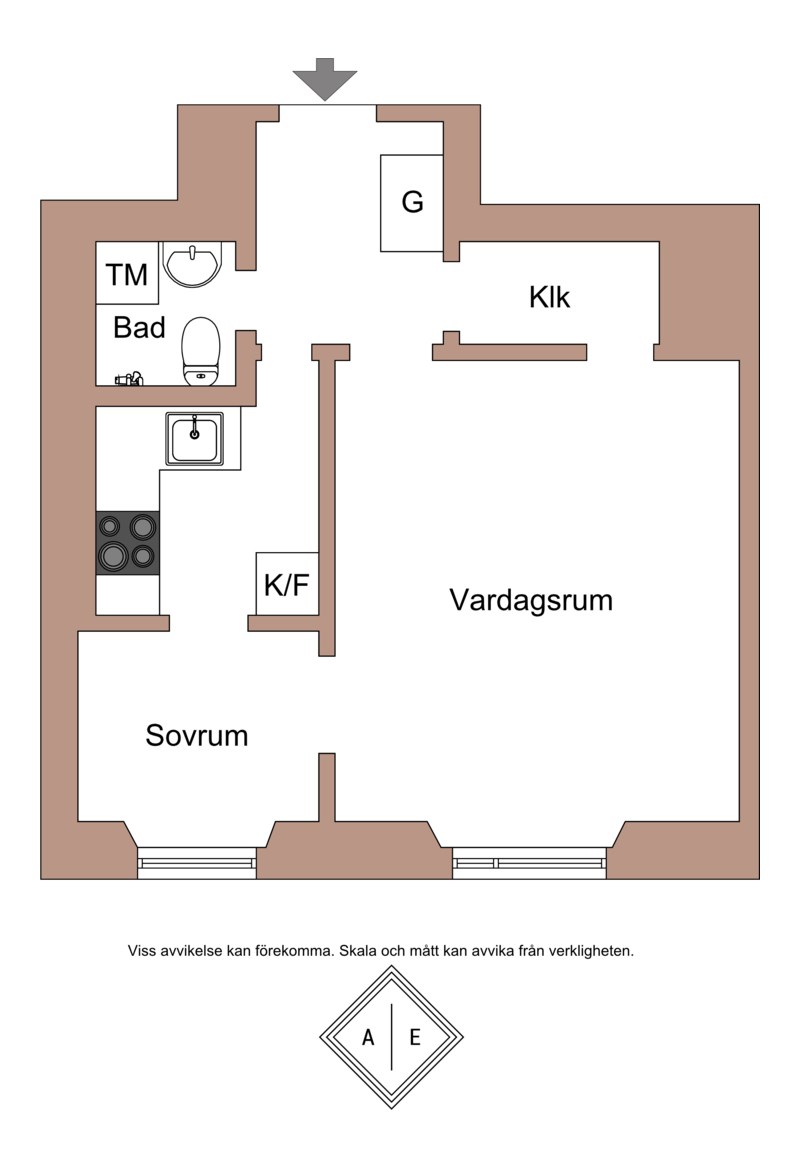 Lägenheten är registrerad som 37 kvm och 1 rok enligt föreningen men disponeras som 2 rok.