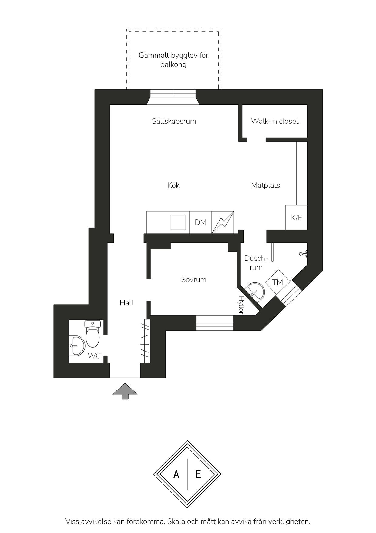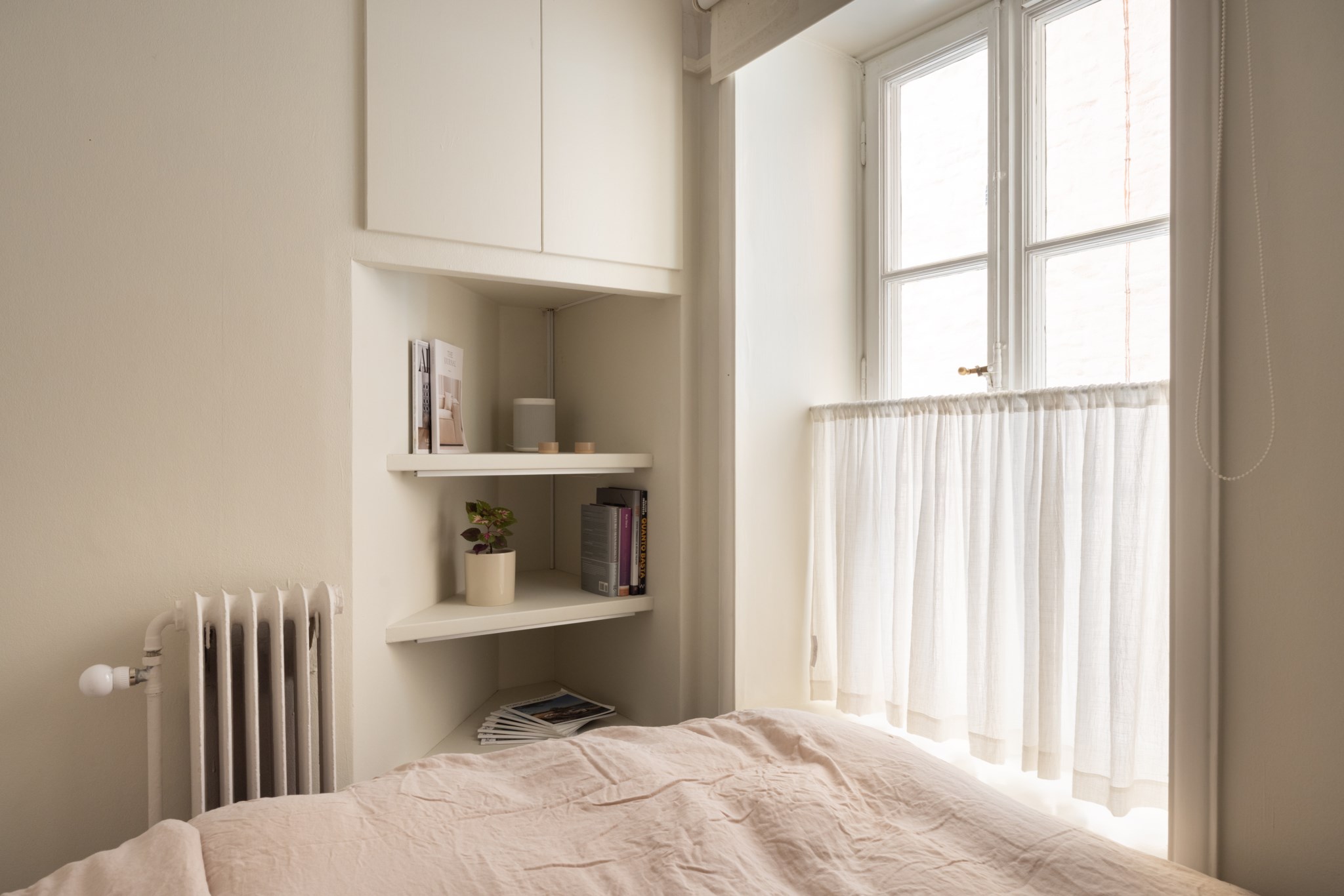 Det ljuvliga köket är både funktionellt och smakfullt med gott om förvaring och generösa arbetsytor som gör matlagningen till ett nöje. Sovrummet rymmer en 140-säng och kompletteras av smart platsbyggd förvaring som utnyttjar ytan på ett effektivt sätt. Bostaden erbjuder även en praktisk planlösning med separat wc och duschrum utrustat med tvättmaskin. Förvaringsmöjligheterna är dessutom utmärkta tack vare en rymlig walk-in-closet som slukar det mesta.